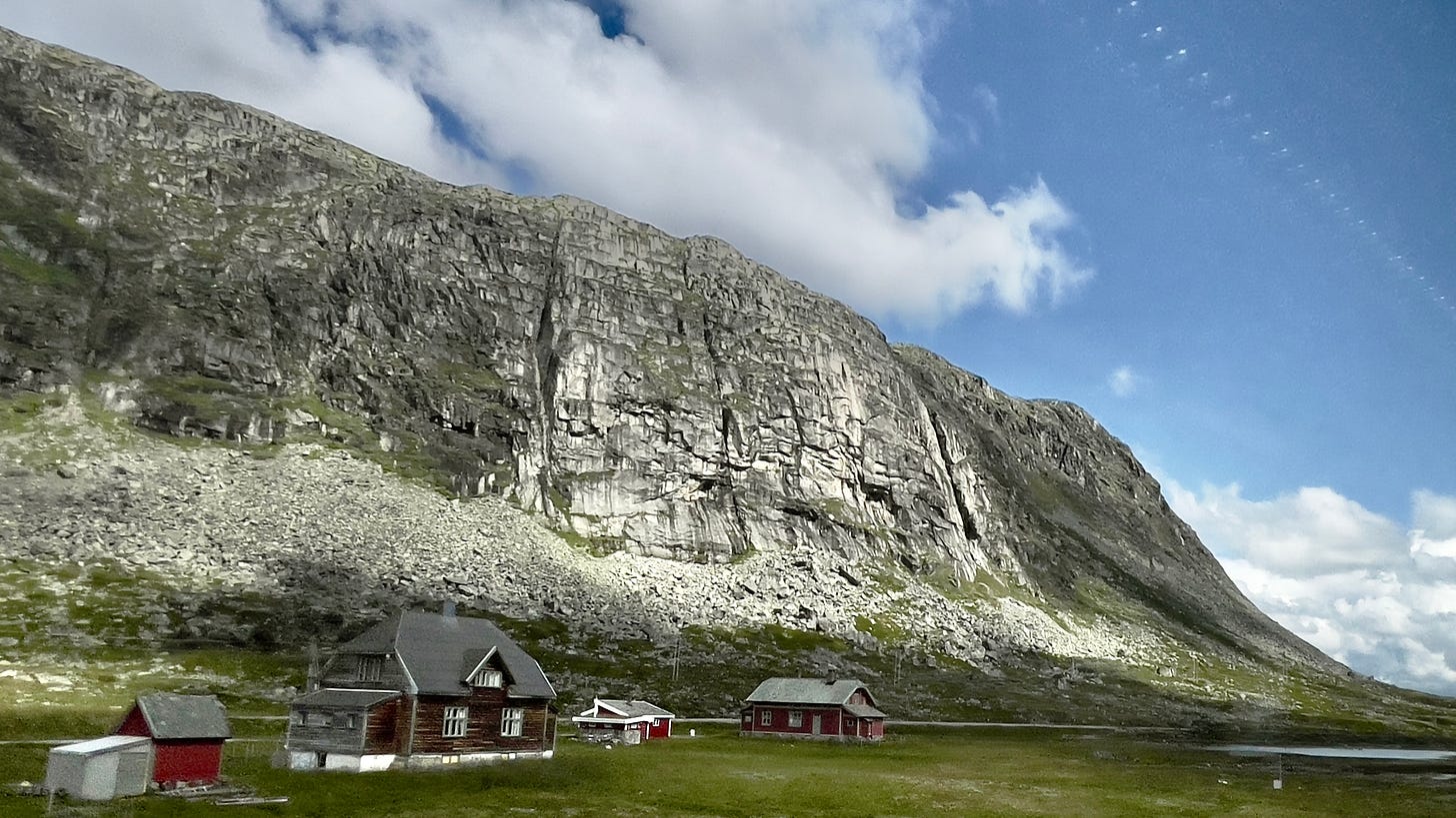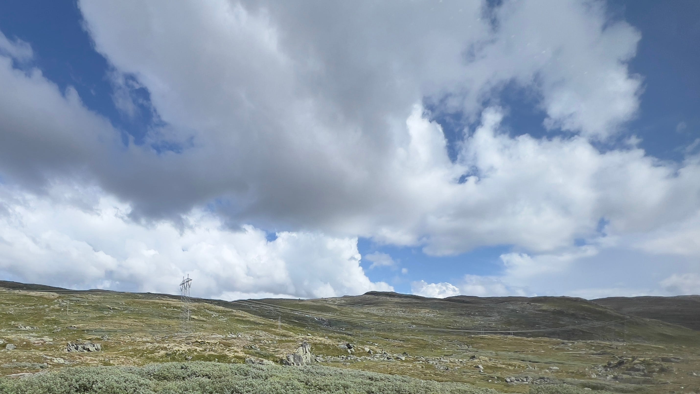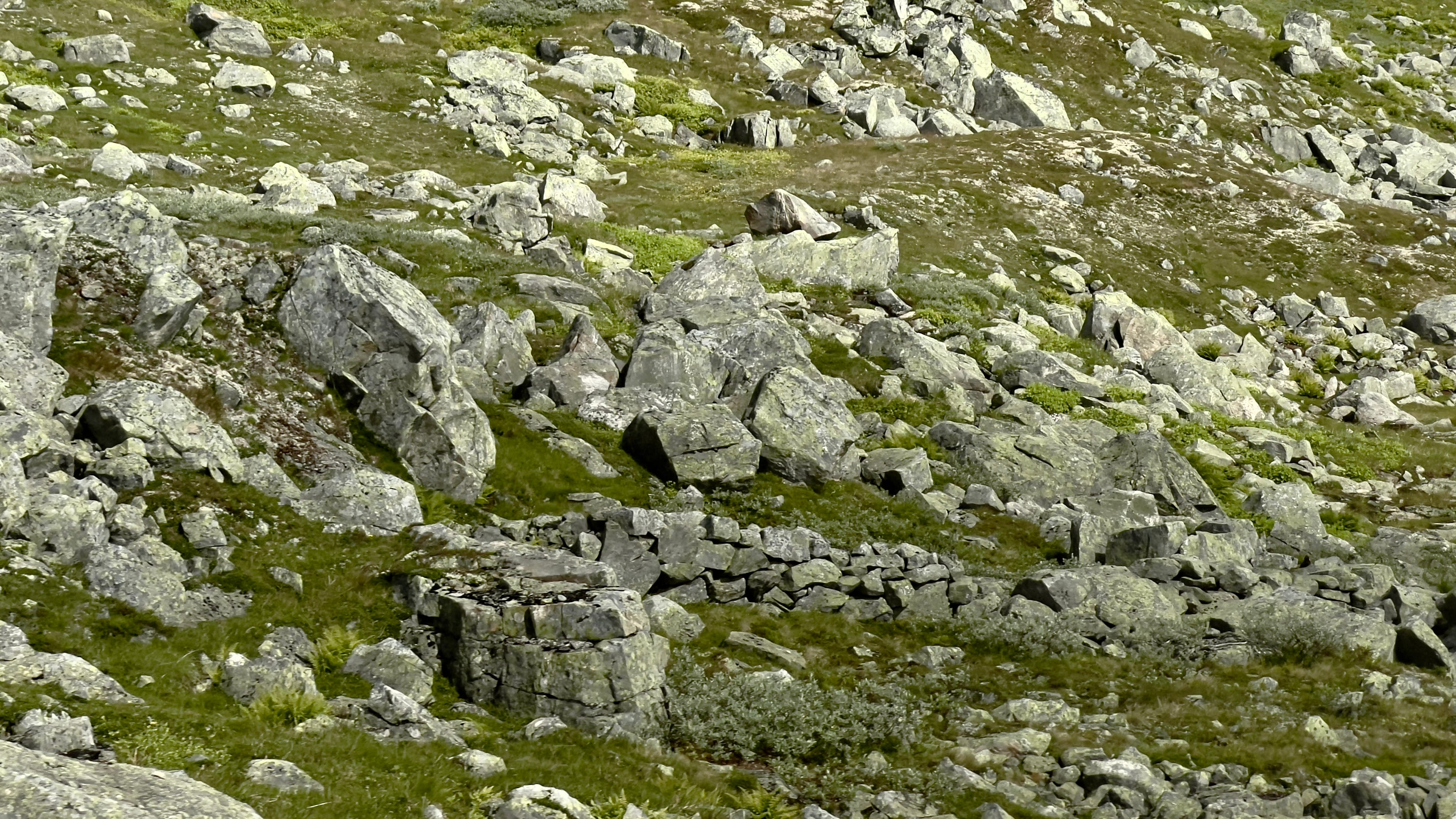 The fells of the plateau—the Hardangervidda region—alpine, flora a few inches high, bedrock a few inches below, glaciers just out of sight, glacial milk in streams, reindeer herds I hear, people with backpacks I see—this is where land and sky worship each other and hikers simply witness.