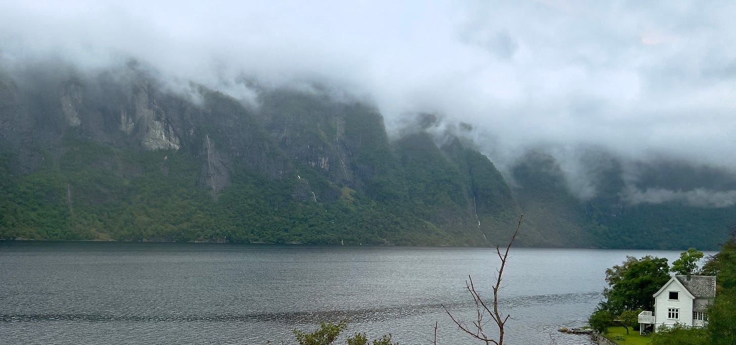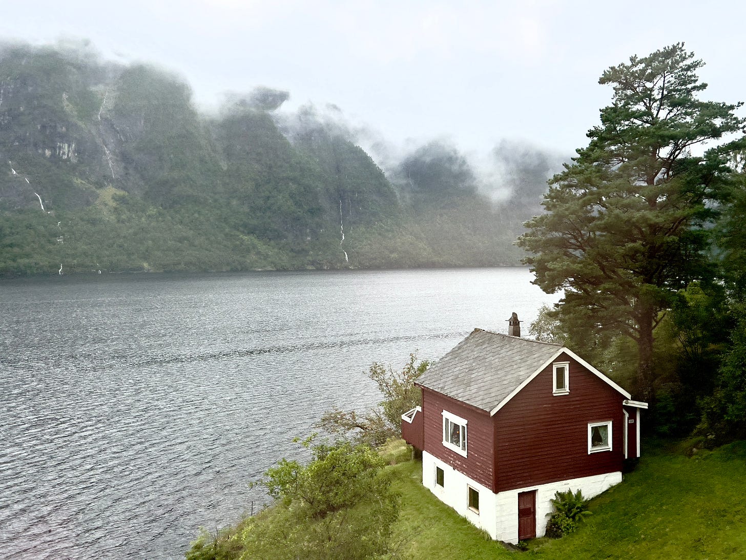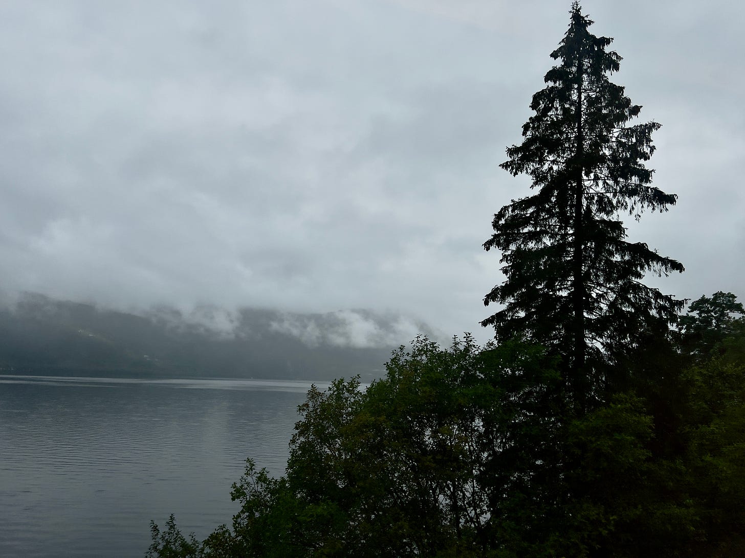 A fjord keeps an eye on a tree—which reminds me I want to see a stave church—they can approach 900 years in age, and I’ve read certain trees on the north side of ridges were ring-barked and left to season for decades before being used in a stave church.